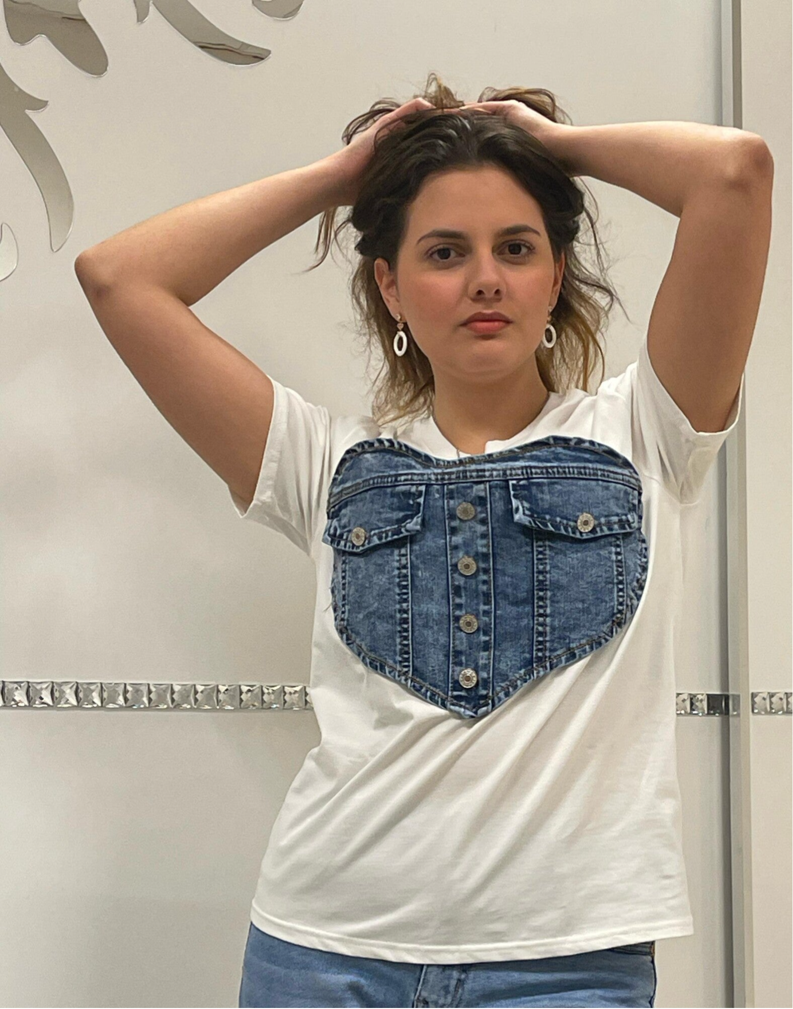 T-shirt met ronde hals en korte mouwen. spijker materiaal .