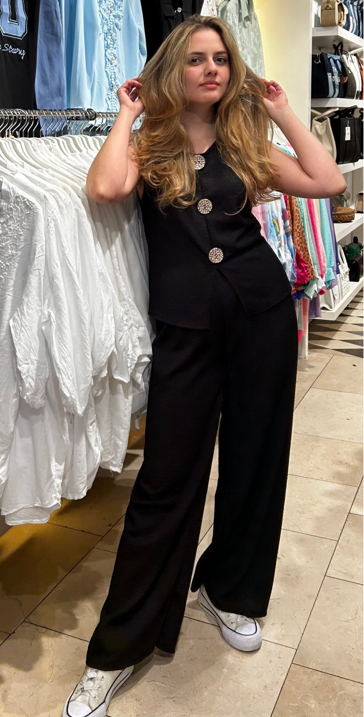 IMPLY PERFECT! ❥ Dit setje is jouw nieuwe go-to voor elke dag. Zacht, comfy en super easy om te stylen. Combineer het met slippers, sneakers of maak je look compleet met hakken voor een chique lookje. Altijd ready to go!