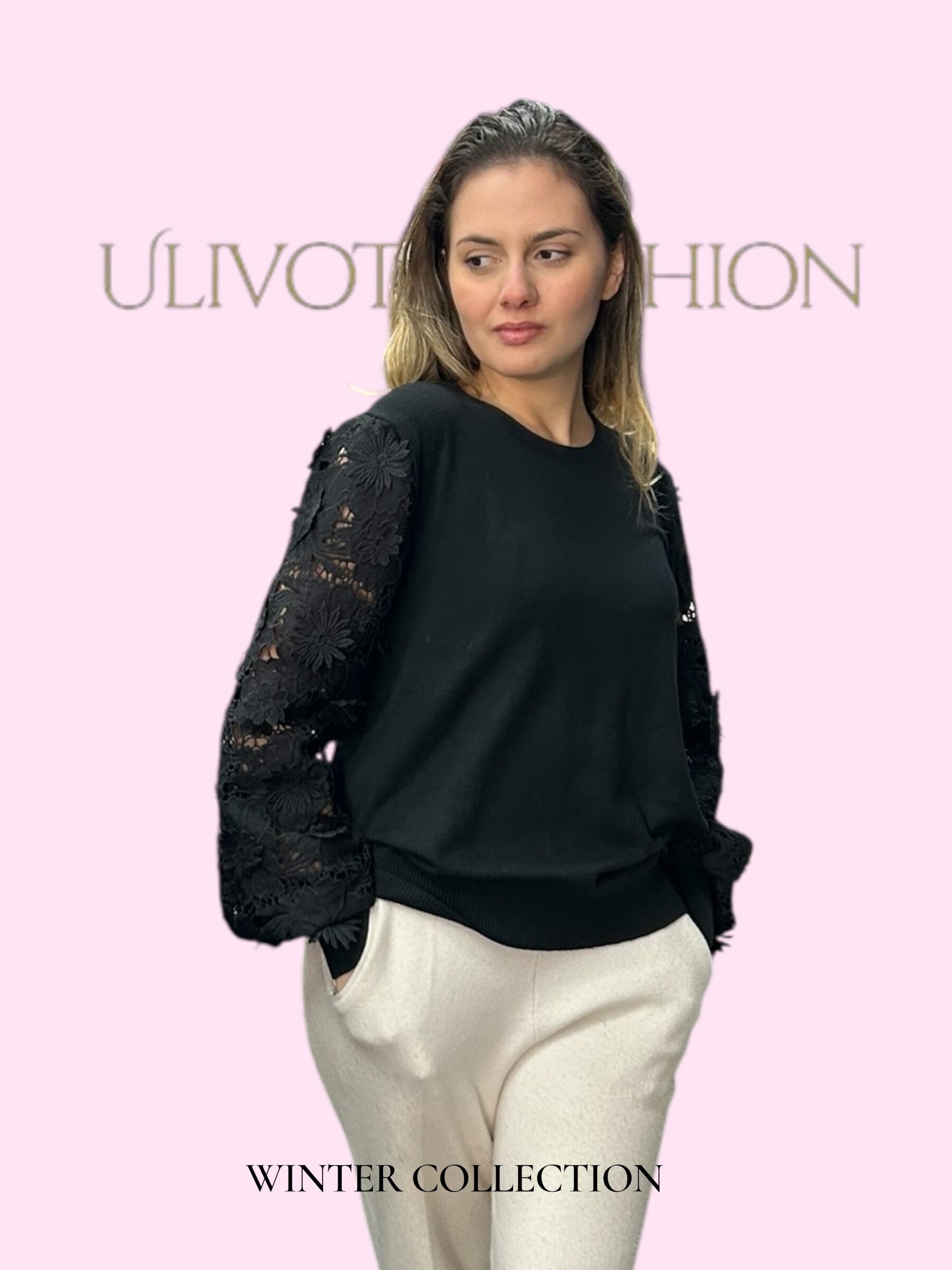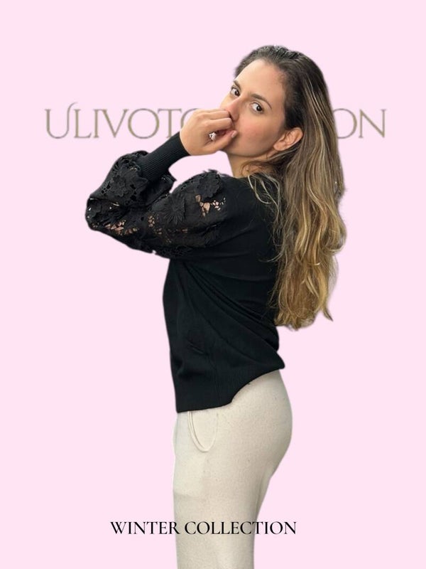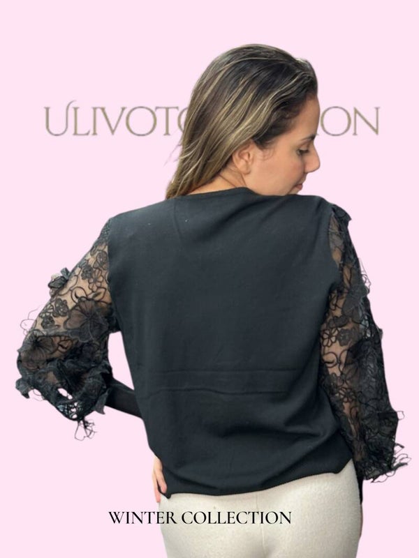 De blikvanger zijn de transparante mouwen met geborduurde bloemen, die zorgen voor een romantische en moderne touch.