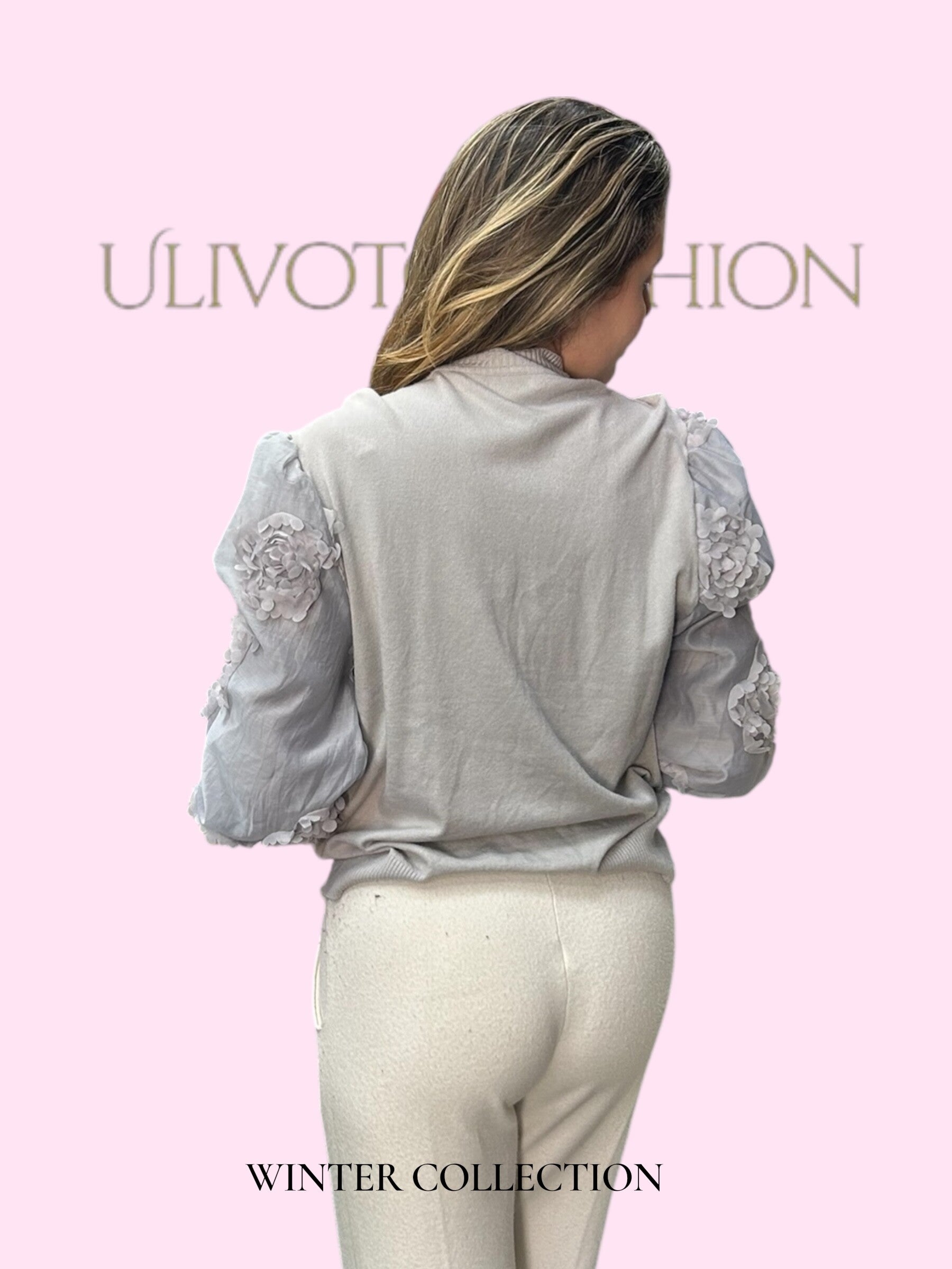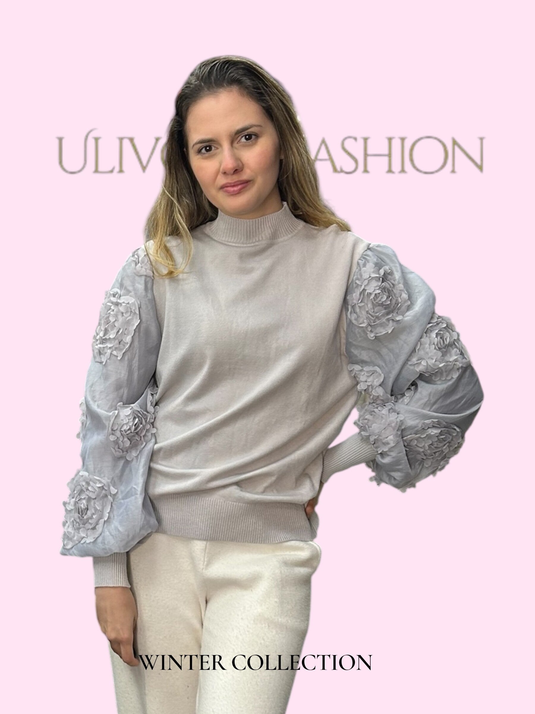 De Elegantie Bloemen Blouse valt op door de pofmouwen met bloemapplicaties in reliëf die een romantische en verfijnde uitstraling geven. Gemaakt van viscose, zacht, licht en comfortabel – perfect voor elke gelegenheid. Verkrijgbaar in wit, bruin, zwart, crème en grijs, een elegante basic die niet in je garderobe mag ontbreken.