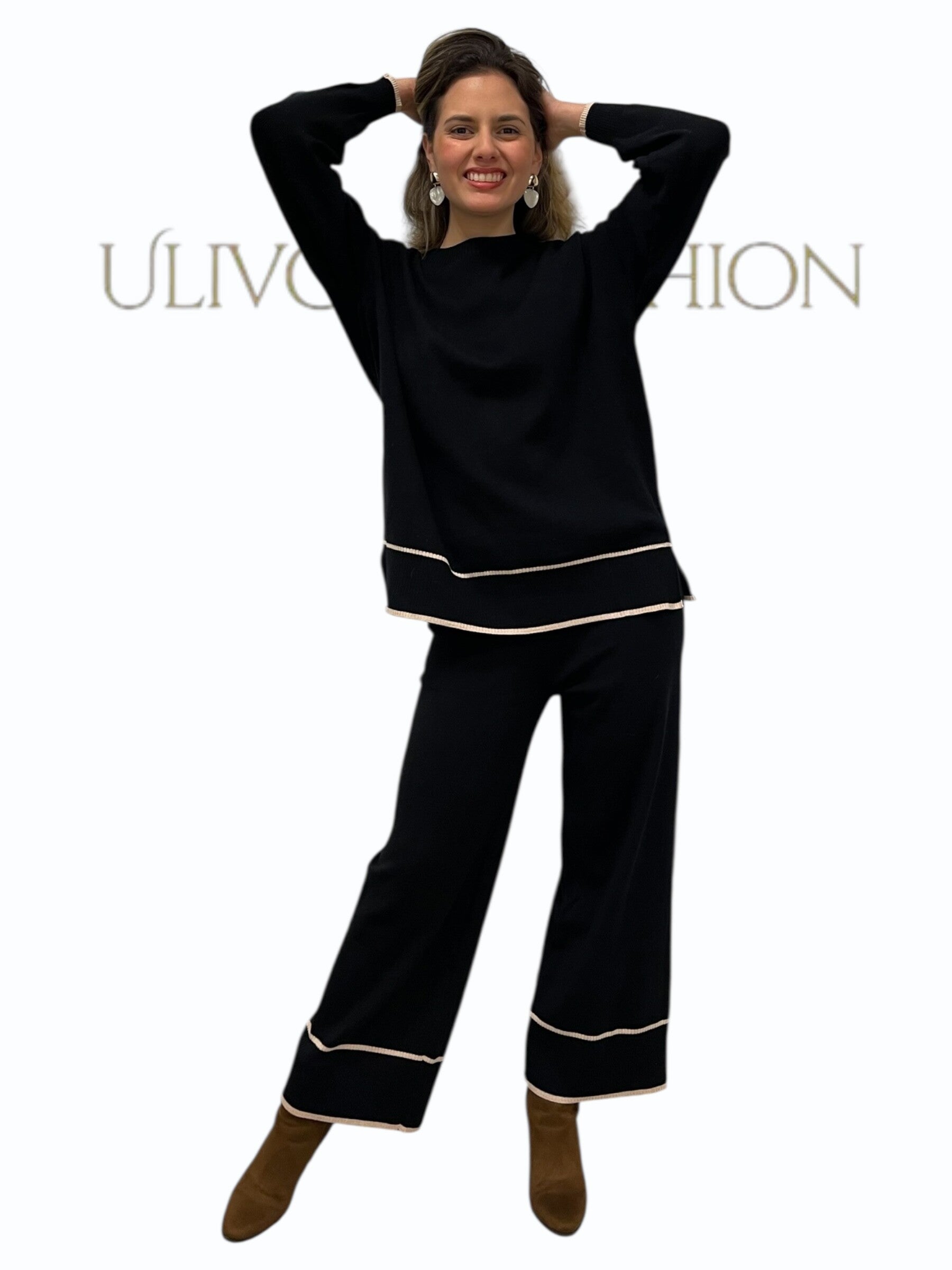 Tweedelig set gemaakt van zachte viscose, ontworpen voor ultiem comfort met een stijlvolle uitstraling. De losse pasvorm en contrasterende randen geven het een moderne en ontspannen look. Perfect om zowel thuis als buiten te dragen.