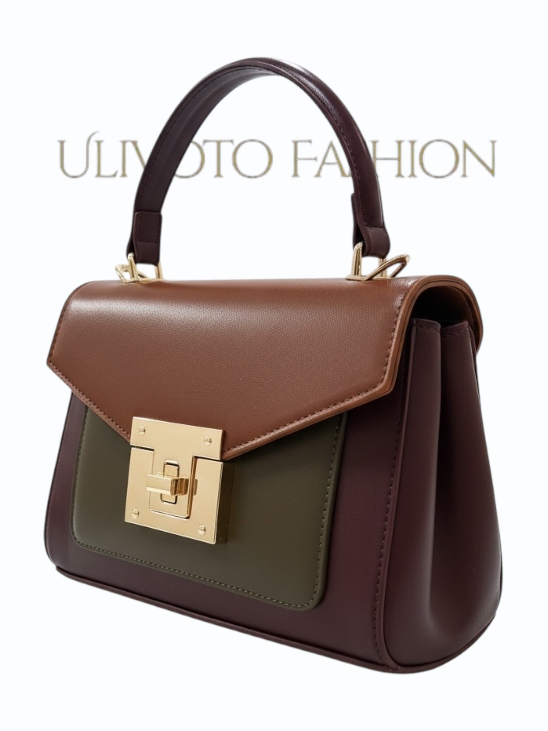 Deze stijlvolle handtas in warme bruintinten straalt klasse en elegantie uit. Het gestructureerde design met flap en luxe goudkleurige draaisluiting geeft de tas een tijdloze uitstraling. Dankzij het compacte maar praktische formaat is deze tas ideaal voor dagelijks gebruik én speciale gelegenheden.