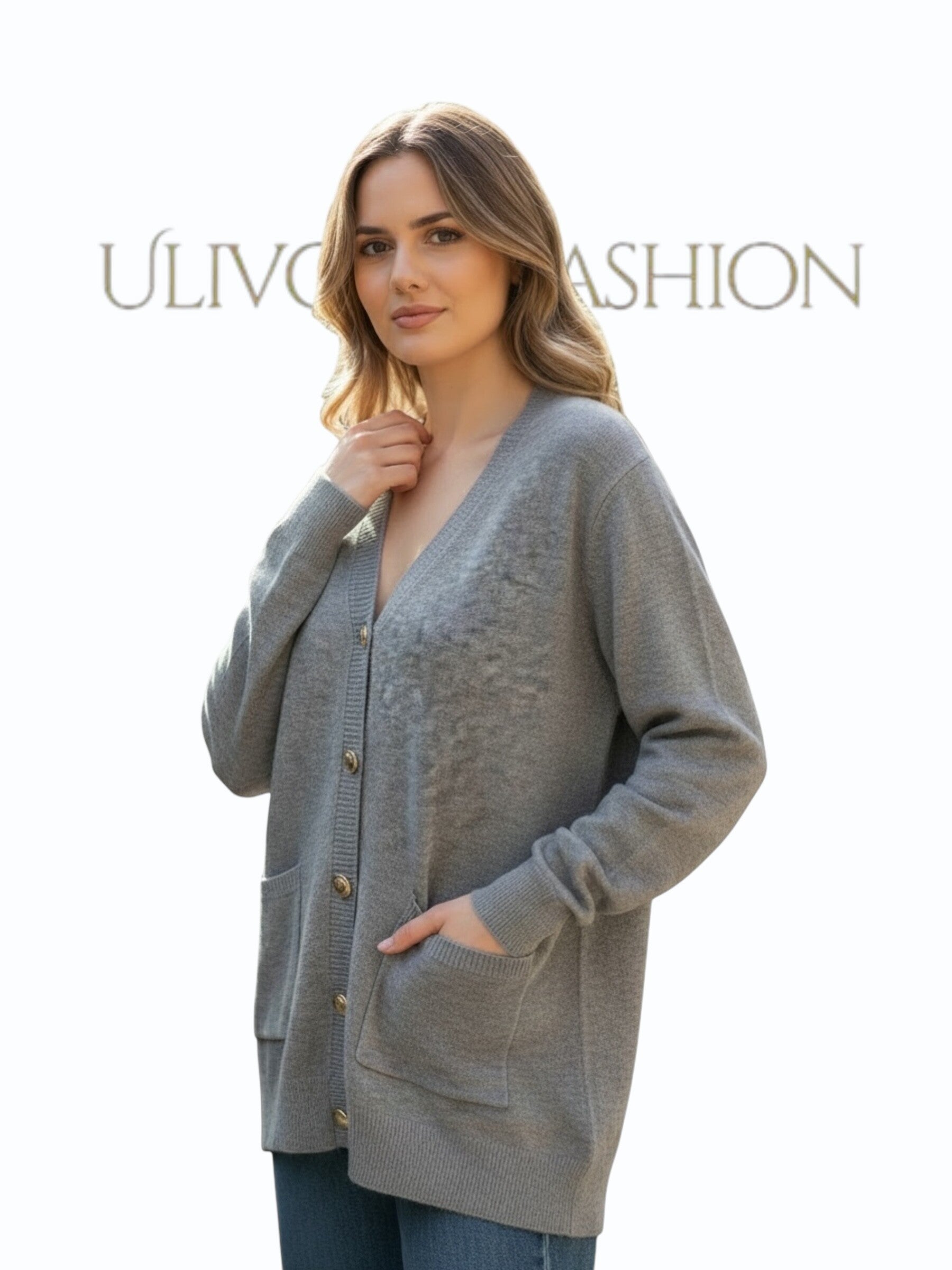 Deze dames cardigan is ontworpen met een elegante V-hals en een knoopsluiting voor een klassieke en vrouwelijke uitstraling. Het zachte breisel en de rechte pasvorm zorgen voor optimaal draagcomfort, terwijl de praktische zakken aan de voorzijde een functioneel detail toevoegen.