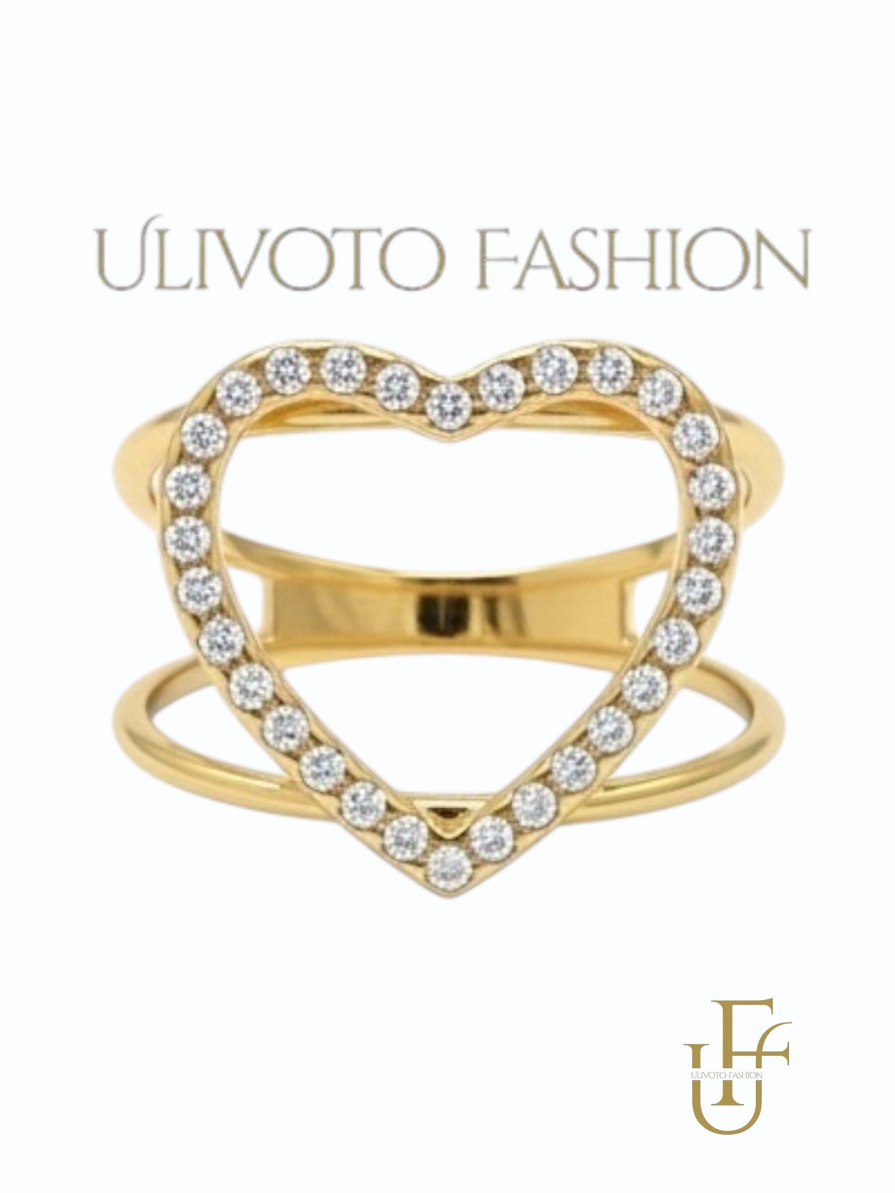 Deze goudkleurige hart ring staat symbool voor liefde en elegantie. Het open hartdesign is verfijnd afgewerkt met fonkelende strass steentjes, wat de ring een luxe en vrouwelijke uitstraling geeft. Dankzij het minimalistische maar opvallende ontwerp is deze ring perfect voor dagelijks gebruik én speciale momenten.