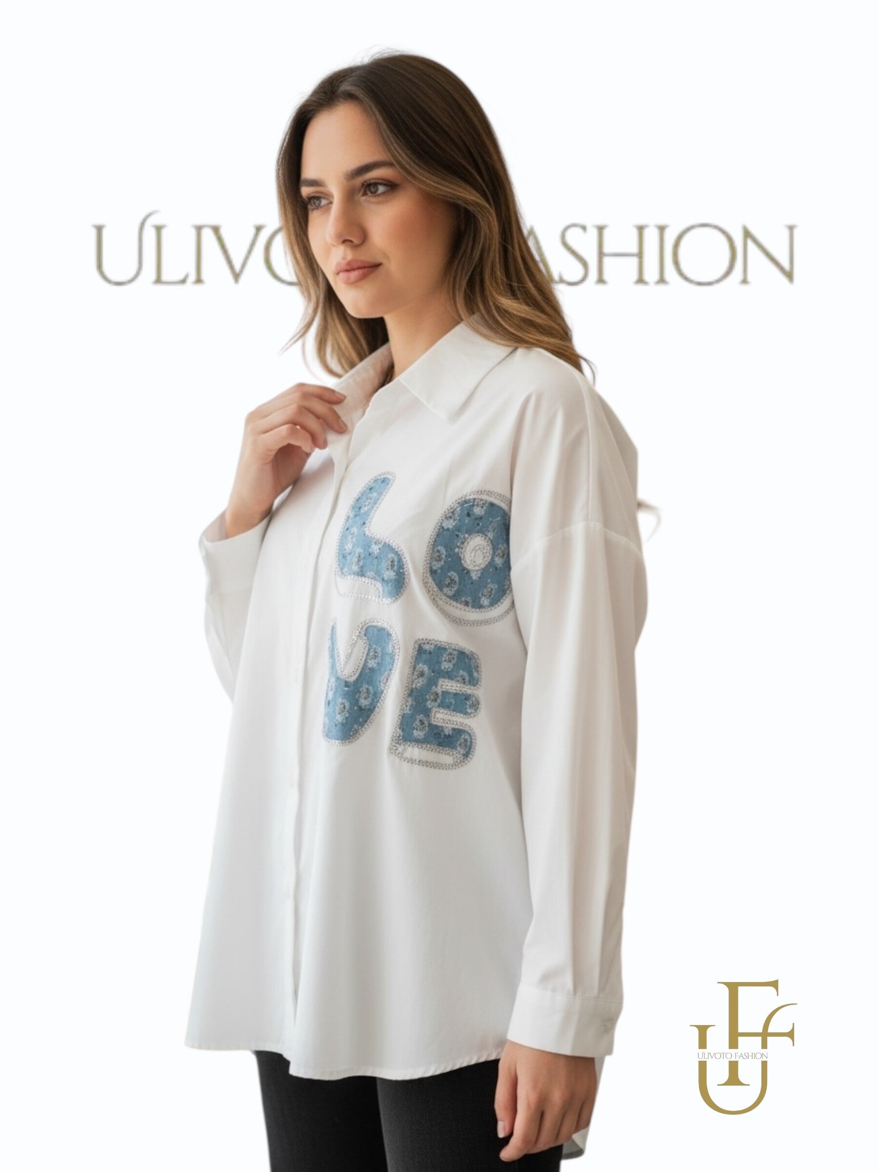Deze moderne witte damesblouse krijgt een speelse en trendy uitstraling dankzij de opvallende blauwe printdetails aan de voorkant. Het design combineert moeiteloos eenvoud met een modieuze touch, waardoor deze blouse perfect is voor vrouwen die houden van een eigentijdse look.